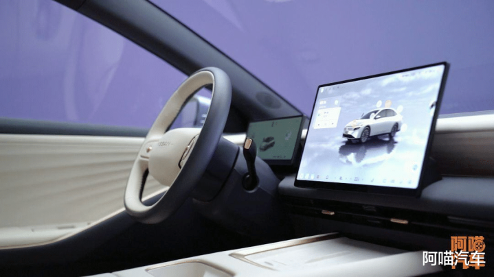 内饰采用极简主义风格,配合居家实用设计。方向盘为双拼色设计,座椅材质使用亲肤的凝脂材质,触感比较柔软。